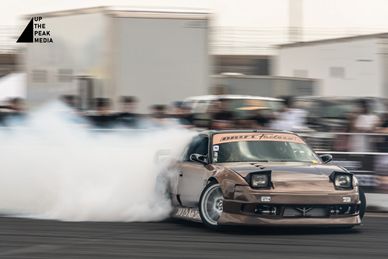 The theater of drifting is heightened by the billowing smoke and growling of an engine destroying tires.